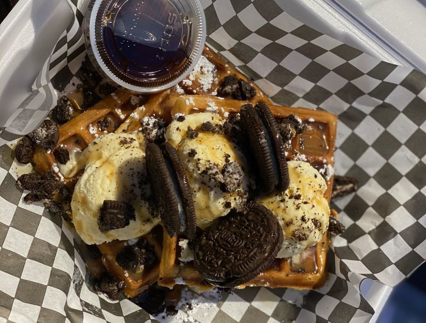 Delicious genuine dishes like their signature Fish On A Stick and chicken and waffles.